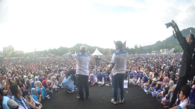 Tidak kurang dari 47 ribu massa yang identik dengan warna biru memadati lapangan hingga ke jalanan sekitar tempat kampanye, bahkan tribun alun-alun baru dan alun-alun lama sampai sesak dipenuhi massa yang datang memberikan dukungan kepada pasangan calon Bupati Enrekang nomor urut 01 tersebut.