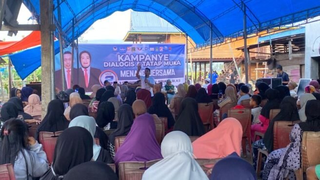 SIDRAP, HBK – Masyarakat Dusun 2, Padang Loang Alau, Kabupaten Sidrap, Sulawesi Selatan, pada Jumat, 27 September 2024, menghadiri acara kampanye dialogis dan tatap muka oleh pasangan calon Bupati H.Syaharuddin Alrif dan Nurkana’ah yang digelar oleh tim bertagline SARKANAAH untuk Kemajuan Sidrap.