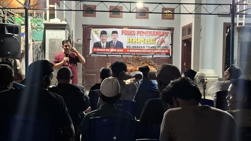 SIDRAP, HBK — Dalam sebuah momen yang penuh semangat, ratusan warga Kecamatan Dua Pitue berkumpul di kediaman pribadi Andi Berlian untuk menyaksikan kampanye pasangan calon HAMAS NA (H.Mashur-H.Nasiyanto), Minggu, 29 September 2024.