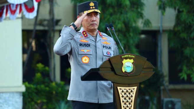 MAKASSAR,HBK – Kapolda Sulawesi Selatan, Irjen Pol. Drs. Rusdi Hartono, M.Si., memimpin apel pagi di Lapangan Upacara Mapolda Sulsel, Senin (04/08/2025). Apel turut diikuti Wakapolda Sulsel, Brigjen Pol. Nasri, S.I.K., M.H., Irwasda Polda Sulsel, Kombes Pol Ai Afriandi, S.H., S.I.K., M.M., para Pejabat Utama, serta seluruh personel Polda Sulsel.