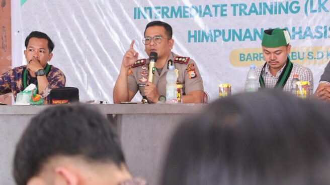 Kapolres Barru membawakan materi bertajuk “Amanah di atas Seragam: Memperkuat Sistem Pengawasan Internal Demi Polri yang Presisi dan Humanis.” Kegiatan ini menjadi wadah strategis dalam membangun sinergi antara Polri dan kalangan mahasiswa, khususnya dalam penguatan fungsi pengawasan terhadap institusi negara.