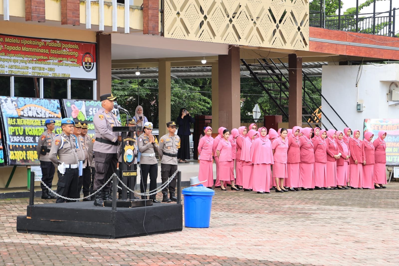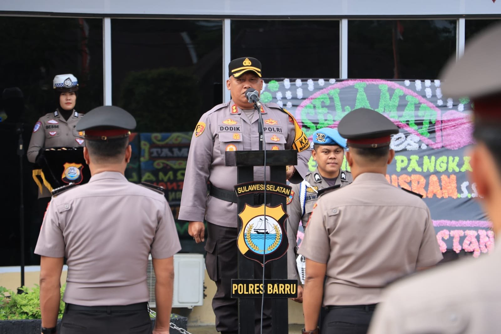 Di akhir sambutannya, Kapolres Barru mengucapkan selamat kepada para personel yang dinaikkan pangkatnya.