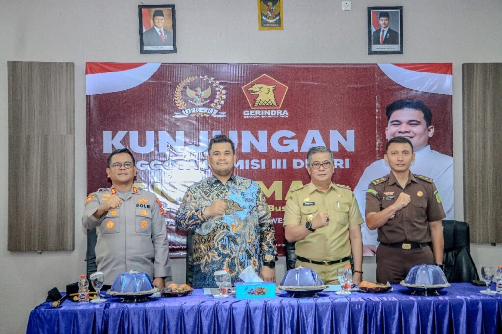 BARRU,HBK — Kapolres Barru AKBP Ananda Fauzi Harahap, S.I.K bersama jajaran menerima kunjungan kerja Anggota Komisi III DPR RI Andi Amar Ma’ruf Sulaiman, S.E., BBusMan., M.H. di Aula Endra Dharmalaksana, Polres Barru, Selasa (21/10/2025).