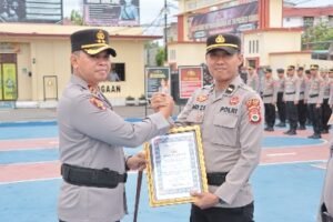 SIDRAP, HBK — Kepala Kepolisian Resor Sidenreng Rappang (Sidrap), AKBP Fantry Taherong, memberikan piagam penghargaan kepada personel Humas Polres Sidrap yang dinilai berprestasi dalam mengangkat citra positif dan mengharumkan nama institusi di masyarakat.