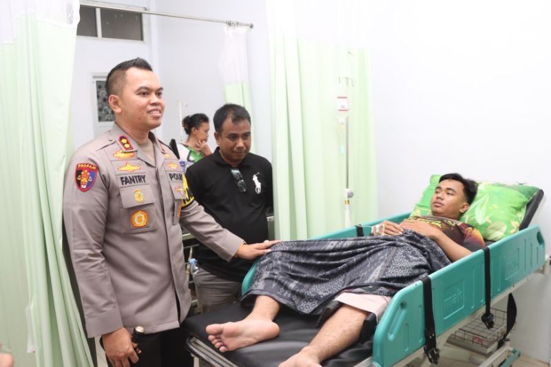 SIDRAP, HBK — Sebagai wujud perhatian dan empati terhadap anggotanya, Kapolres Sidrap AKBP Fantry Taherong menjenguk BRIPDA Fahrul salah satu personel Sat Samapta Polres Sidrap yang tengah menjalani perawatan intensif di RSUD Nene Mallomo setelah mengalami kecelakaan dan patah tulang pada bagian paha.
