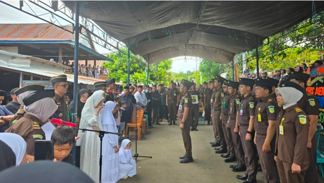 Prosesi pemakaman berlangsung khidmat dengan dihadiri keluarga, kerabat, serta jajaran kejaksaan yang turut memberikan penghormatan terakhir kepada almarhum. (*)
