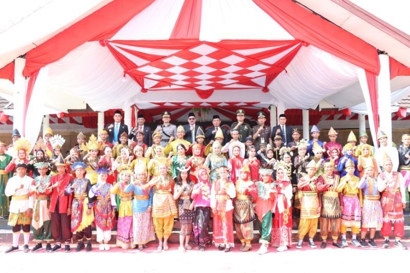 Upacara berlangsung dengan khidmat, dimulai dengan pengibaran Bendera Merah Putih dan diiringi lagu kebangsaan Indonesia Raya. Berbagai organisasi pemuda turut berpartisipasi dengan menampilkan berbagai pakaian adat daerah, menunjukkan antusiasme dalam memperingati hari bersejarah ini.