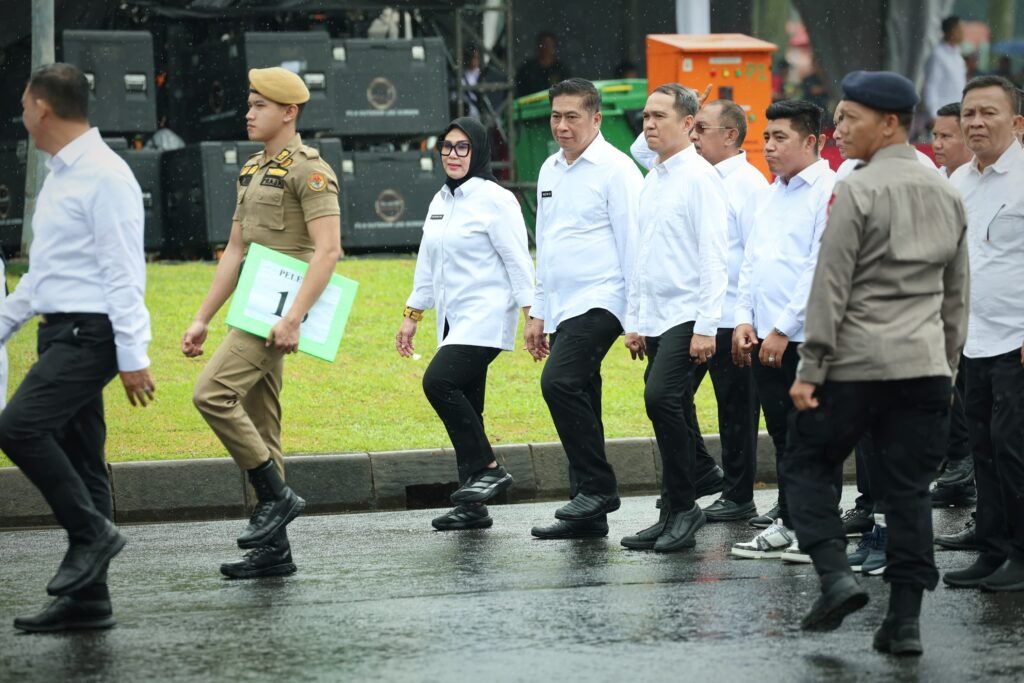 Terpantau, hujan gerimis yang turun sejak subuh tidak mempengaruhi pelaksanaan gladi bersih. Para kepala daerah terpilih itu tetap bersemangat berbaris teratur. Mereka terus berlatih kendati pakaian mereka terlihat basah oleh gerimis.