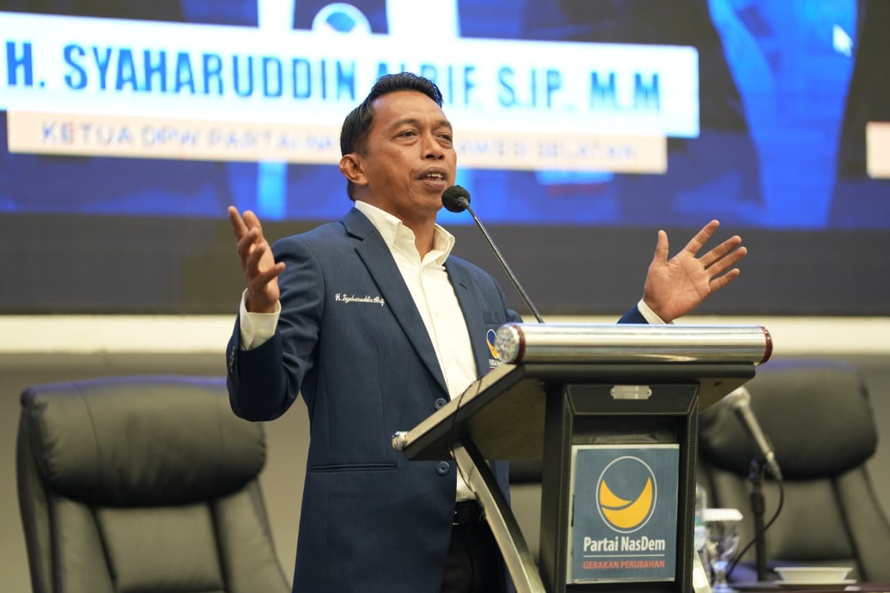 MAKASSAR, HBK — Ketua DPW Partai NasDem Sulawesi Selatan, Syaharuddin Alrif, memulai masa kepemimpinannya dengan menggelar konsolidasi pengurus dari 24 kabupaten/kota di Makassar, Jumat (13/2/2026).