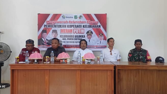 Dalam musyawarah ini, secara resmi dibentuk Koperasi Kelurahan Merah Putih Bilokka sebagai wadah penguatan ekonomi masyarakat berbasis gotong royong.