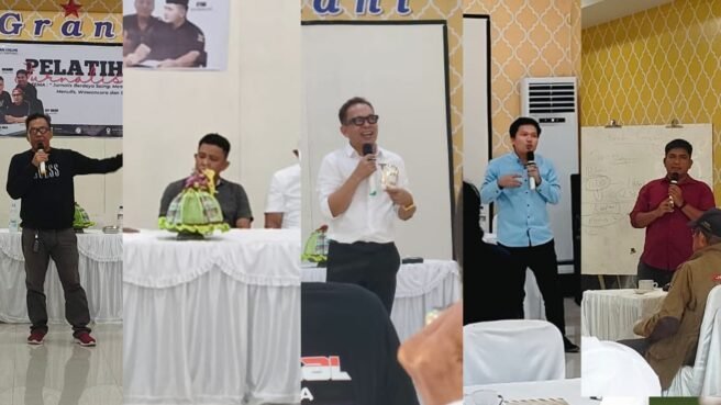 Dengan gaya distingtif dan penguasaan materi yang mendalam, kelimanya mengguncang panggung Pelatihan Jurnalistik Digital yang digelar Ikatan Wartawan Online (IWO) Sidrap di Lantai 2 Hotel Grand Sidny, Kamis, 1 Mei 2025.