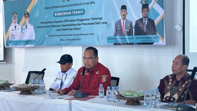 SINJAI, HBK, – Pemerintah Kabupaten (Pemkab) Sinjai melalui Dinas Kependudukan dan Pencatatan Sipil (Disdukcapil) Kabupaten Sinjai menggelar Bimbingan Teknis (Bimtek) Peningkatan Kapasitas SDM dalam Penggunaan Teknologi Informasi untuk Pelayanan Kependudukan dan Pencatatan Sipil.