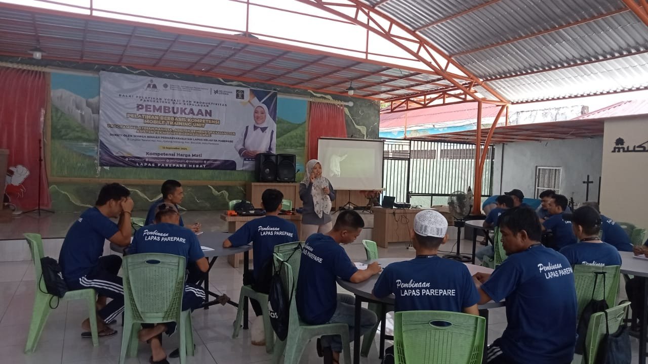 Pelatihan berbasis kompetensi bersertifikat Standar Nasional bagi warga binaan di Lapas Kelas IIA Parepare, Sulawesi Selatan, merupakan program yang bertujuan untuk mencetak tenaga kerja dan calon wirausaha yang bertujuan memberikan bekal keterampilan atau soft skill bagi warga binaan yang akan bebas nantinya.