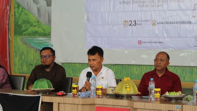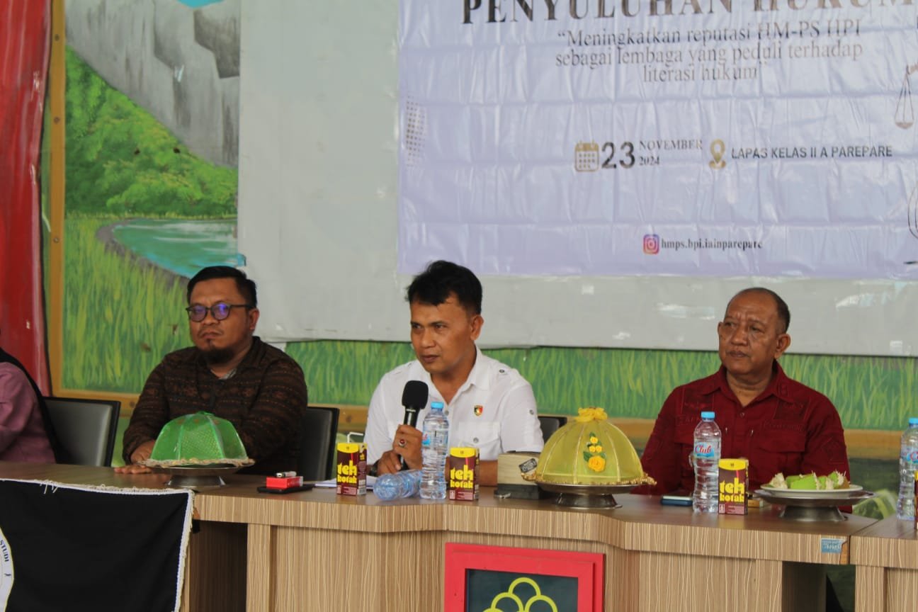 PAREPARE, HBK — Lembaga Pemasyarakatan (Lapas) Kelas IIA Parepare kembali menyelenggarakan kegiatan penyuluhan hukum gratis bagi Warga Binaan Pemasyarakatan (WBP) dengan menggandeng Institut Agama Islam Negeri (IAIN) Kota Parepare dan Lembaga Bantuan Hukum (LBH) Citra Keadilan. Kegiatan ini berlangsung pada Sabtu, 23 November 2024, di aula Lapas IIA Parepare dengan tema “Meningkatkan Reputasi HM-PS HPI Sebagai Lembaga yang Peduli terhadap Literasi Hukum bagi Warga Binaan Pemasyarakatan.”