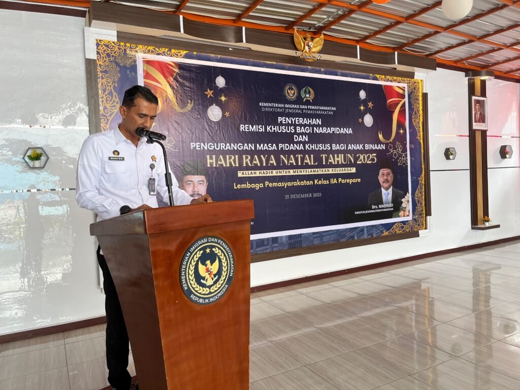 PAREPARE,HBK — Dalam rangka peringatan Hari Raya Natal 2025, Lembaga Pemasyarakatan (Lapas) Kelas IIA Parepare memberikan Remisi Khusus Natal kepada 13 Warga Binaan Pemasyarakatan (WBP) yang beragama Kristen, Kamis (25/12).