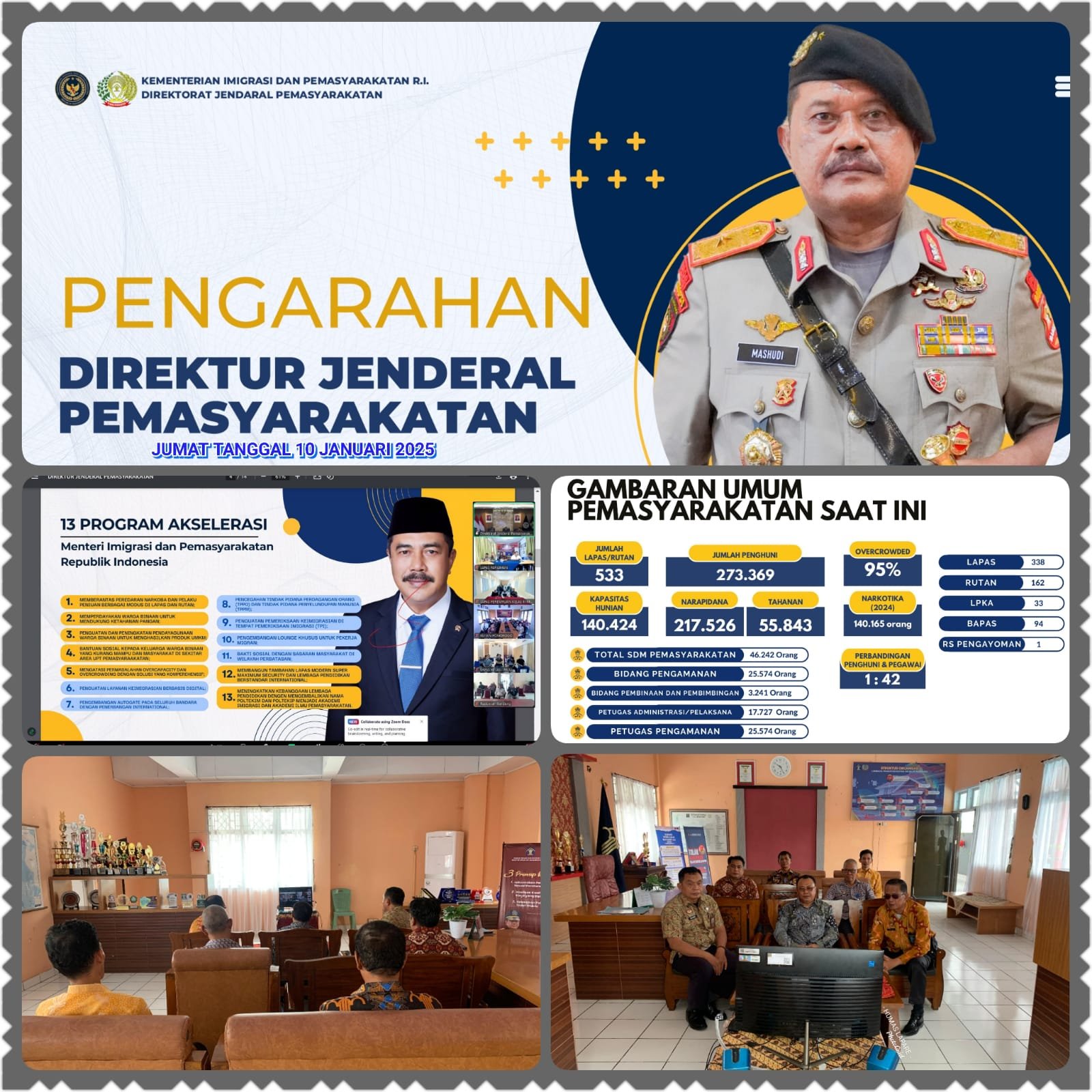 PAREPARE, HBK–Bertempat di Lapas IIA Parepare telah dilaksanakan kegiatan Pengarahan oleh Direktur Jenderal Pemasyarakatan Brigjen Pol. Drs. Mashudi, diikuti oleh PLT.Kepala Kantor Wilayah Direktorat Jenderal Pemasyarakatan, Kepala Divisi Pemasyarakatan dan Kepala UPT Pemasyarakatan beserta jajaran di Seluruh Indonesia secara daring. Jumat, 10 Januari 2025.
