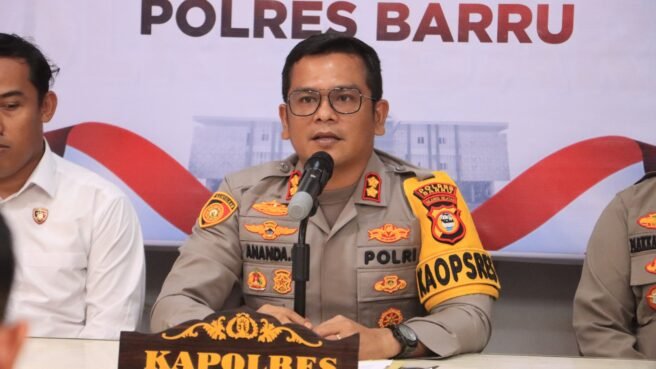 “Pada kesempatan ini, kami menyampaikan rilis akhir tahun 2025 Polres Barru yang memuat capaian kinerja sepanjang tahun 2025, meliputi bidang kriminalitas, narkoba, lalu lintas, pelayanan kepolisian, serta dukungan terhadap program strategis pemerintah,”kata AKBP Ananda Fauzi Harahap SH MH selaku Kapolres Barru pada Rabu (31/12/2025) bertempat ruang press release Humas Polres Barru.