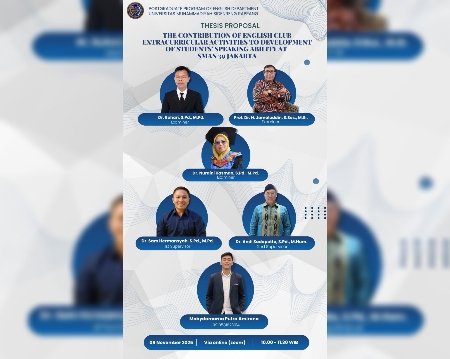 JAKARTA, HBK — Mahasiswa Magister Pendidikan Bahasa Inggris, MobyDamarna Putra Amirana, berhasil melaksanakan ujian proposal secara daring dengan judul “The Contribution of English Club Extracurricular Activities to the Development of Students’ Speaking Ability at SMAN 39 Jakarta”, pada 8 November 2025.