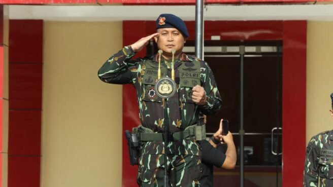Dansat Brimob Polda Sulsel, Kombes Pol Muhammad Ridwan, S.I.K., M.H. bertindak selaku Inspektur Upacara (Irup).