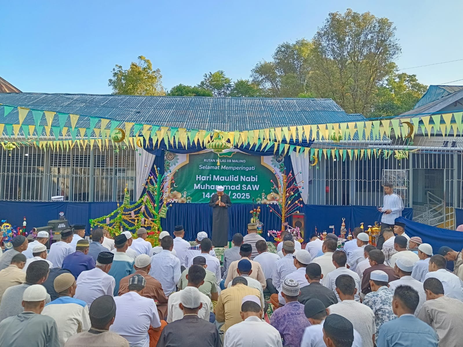GOWA, HBK — Rutan Kelas IIB Malino menggelar peringatan Maulid Nabi Muhammad SAW di lapangan rutan dengan penuh khidmat, Sabtu (13/9).