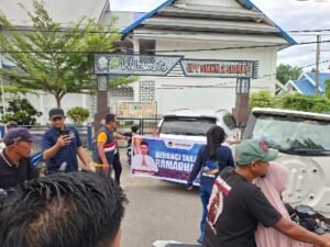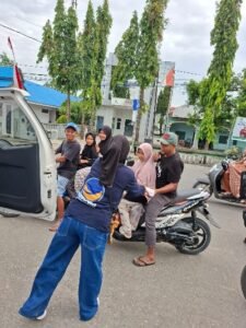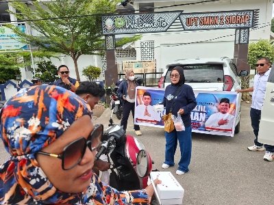 Kegiatan berlangsung di depan gerbang UPT SMKN 2 Sidrap dan mendapat sambutan hangat dari warga.