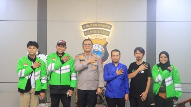 BARRU,HBK – Kepala Kepolisian Resor Barru AKBP Ananda Fauzi Harahap, S.I.K., M.H terima kunjungan silaturahmi dari owner aplikasi layanan transportasi dan pengiriman online Draiv Barru di ruang kerjanya, Rabu (03/12/2025).