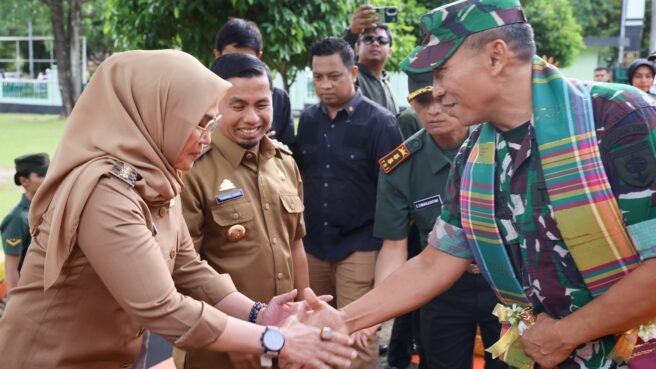 BARRU,HBK – Bupati Barru Andi Ina Kartika Sari, S.H.,M.Si bersama Wakil Bupati Barru Dr. Ir. Abustan A.Bintang, M.Si menghadiri Kunjungan Kerja (Kunker) Panglima Komando Daerah Militer (Pangdam) XIV/Hasanuddin Mayjen TNI Windiyatno di Markas Komando Militer (Makodim) 1405/Parepare pada Senin (24/03/2025) Sore.