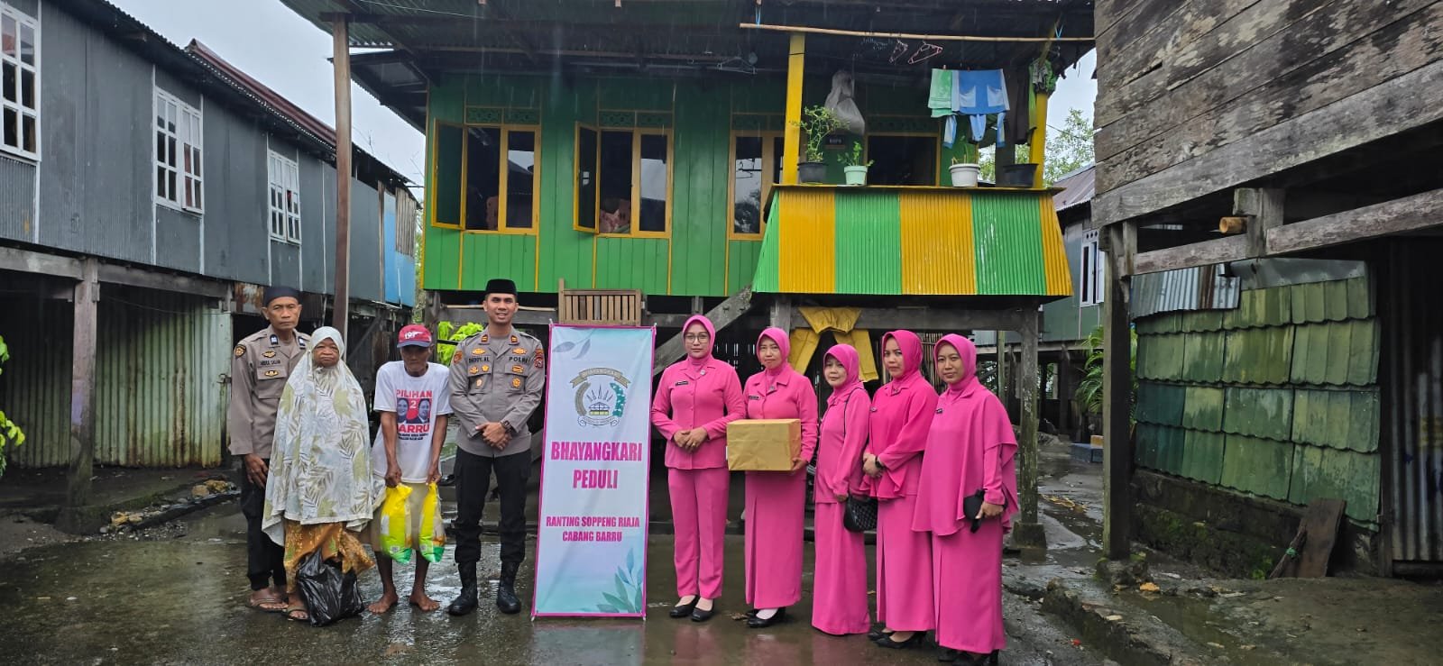 Pemberian bantuan dipimpin langsung Kapolsek Soppeng Riaja Iptu Deddy A.L., S.H., M.M bersama Ketua Bhayangkari Ranting Soppeng Riaja Ny. Nour Deddy serta personel Polsek dan pengurus Bhayangkari.