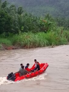 ‎Tim personil BPBD Subulussalam telusuri aliran sungai Lae Soraya menggunakan perahu karet inflatable boat, penelusuran dimulai dari titik korban dinyatakan menghilang.