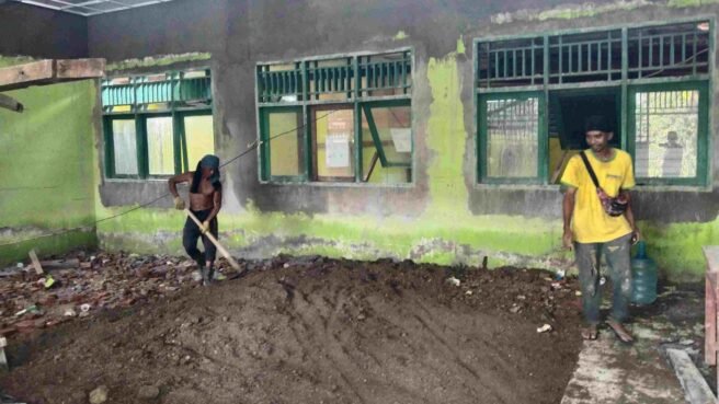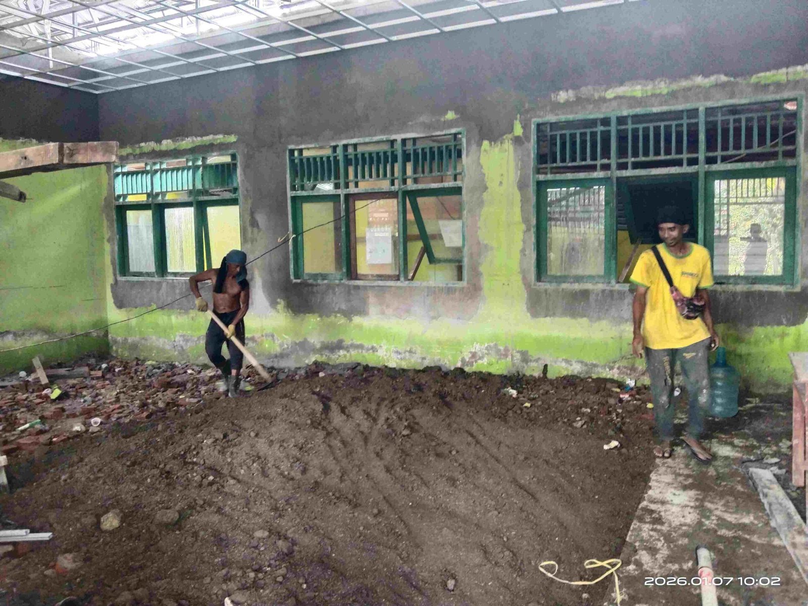 Sementara itu pada Rabu (7/1/2026) tampak dilapangan para pekerja bangunan terlihat dalam melaksanakan kegiatan pembangunan rehabilitasi tidak mematuhi prosedure K3.