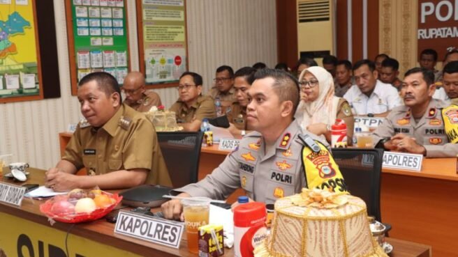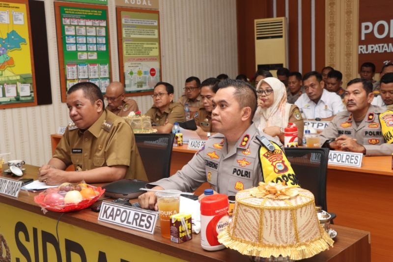SIDRAP, HBK – Kapolres Sidrap AKBP Fantry Taherong bersama Penjabat (Pj.) Bupati Sidrap Idham Kadir Dalle mengikuti Rapat Koordinasi (Rakor) Polri dengan Kementerian Pertanian Republik Indonesia (Kementan RI) secara daring.