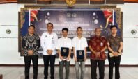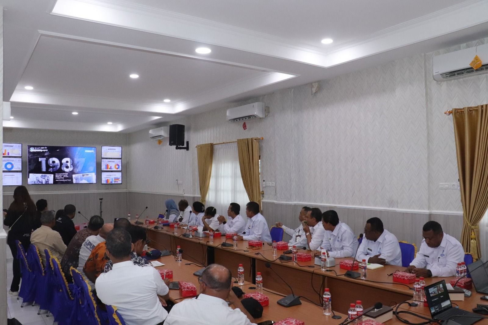 Direktur Utama Dr. Entis Sutisna, SE, MM, MAk, Ak, CA bersama Direktur Umum Syors H. Ondi, SE dan Direktur Teknik Yan P. Nasadit, ST menerima langsung kunjungan yang dipimpin oleh Kepala Dinas PUPR Kabupaten Mimika Inosensius Yoga Pribadi, SH di Command Center PTAM Jayapura (Perseroda).