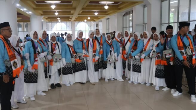 PINRAN, HBK — Sebanyak 387 jamaah haji asal Kabupaten Pinrang yang tergabung dalam Kelompok Terbang (Kloter) 8 Embarkasi UPG Makassar resmi dilepas oleh Wakil Bupati Pinrang, Sudirman Bungi, S.IP., M.Si., di Aula Masjid Agung Al-Munawwir, Sabtu (25/4/2026).