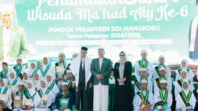 BARRU,HBK – Bupati Barru, Andi Ina Kartika Sari, SH., M.Si., didampingi oleh Wakil Bupati Dr. Ir. Abustan A. Bintang, M.Si., menghadiri Penamatan Santri ke-83 dan Wisuda ke-6 Ma’had Aly Pondok Pesantren DDI Mangkoso Tahun Pelajaran 2024/2025 di Kampus 3 Putri Bululampang, Kecamatan Soppeng Riaja, Ahad (29/06/2025).