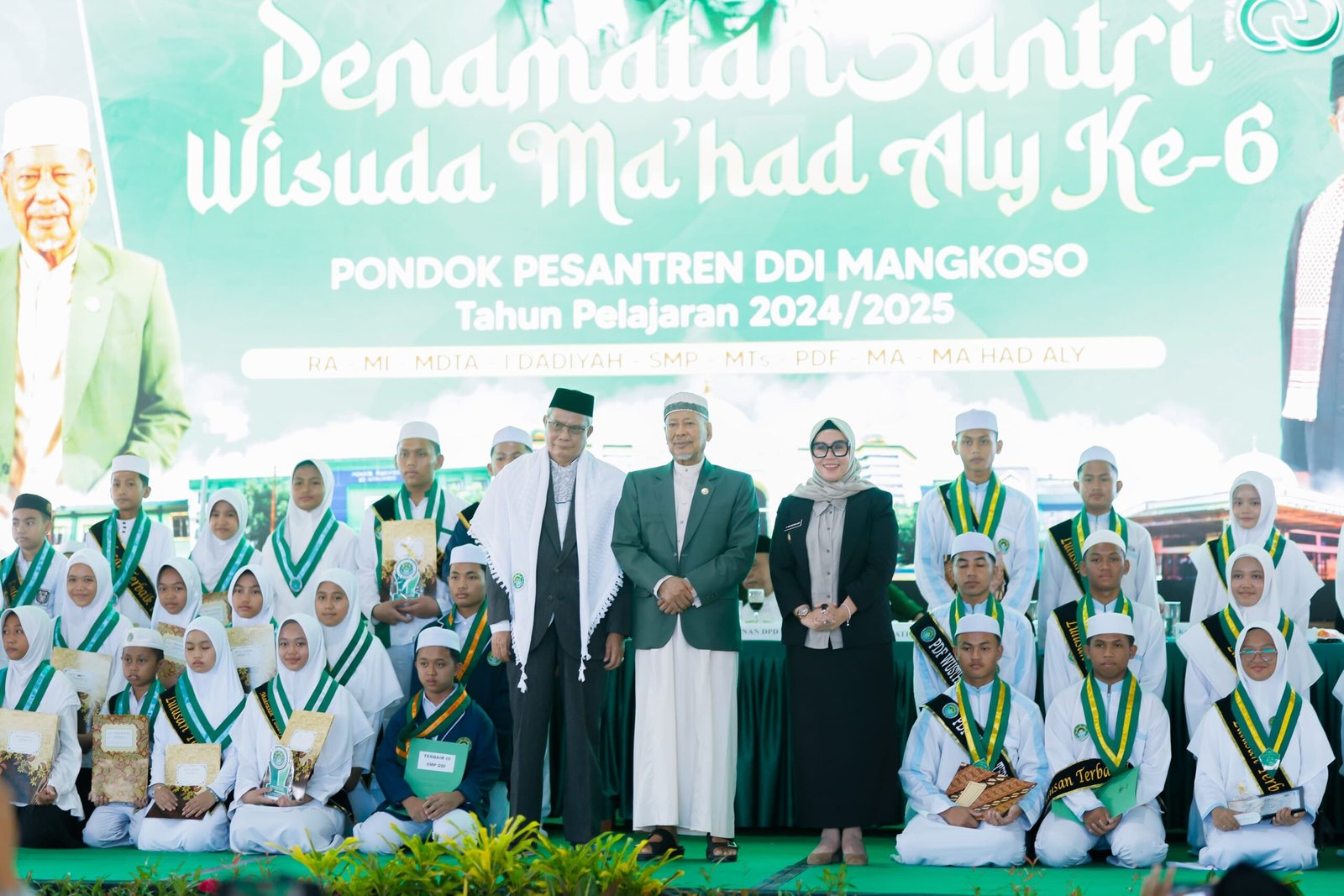 Pada penamanatan ini Bupati Barru mendapat kehormatan memasangkan selempang kepada para santri yang ditamatkan secara simbolis bersama Pimpinan Pondok Pesantren DDI Mangkoso dan Ketua umum Pengurus Besar DDI.