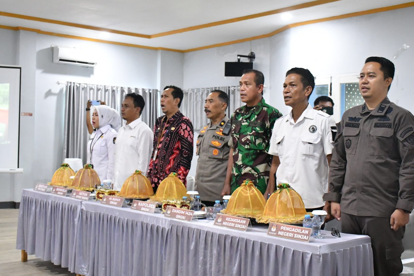 Kursi yang telah disiapkan untuk Ketua DPRD Sinjai kosong, hanya terpantau diisi oleh Forkopimnda yang lain seperti unsur Kepolisian, Kejaksaan, Kodim.