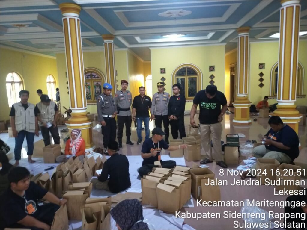 SIDRAP, HBK – Polres Sidrap melaksanakan pengamanan ketat terhadap kegiatan pengepakan atau pengemasan surat suara di Gudang Logistik KPU Kabupaten Sidrap.