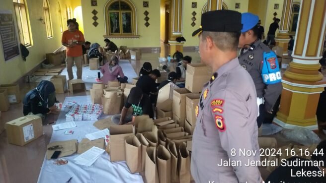SIDRAP, HBK – Polres Sidrap melaksanakan pengamanan ketat terhadap kegiatan pengepakan atau pengemasan surat suara di Gudang Logistik KPU Kabupaten Sidrap.