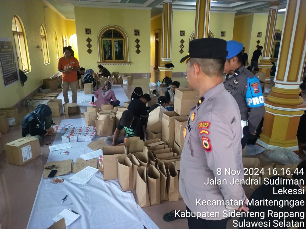 Kapolres Sidrap, AKBP Fantry Taherong melalui Kabag Ops KOMPOL Nasri menjelaskan bahwa pengamanan dilakukan oleh personel Polres Sidrap yang berjaga di area gudang logistik KPU.