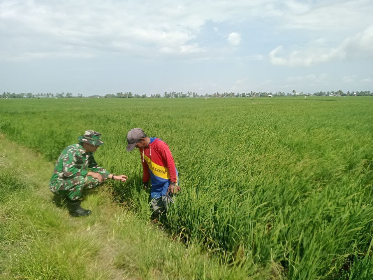 Kegiatan pemantauan rutin ini bertujuan untuk memastikan tanaman padi tumbuh dengan optimal. Selain melihat perkembangan fisik tanaman, Serka Darwis Vera juga berdialog dengan para petani guna mengantisipasi secara dini potensi serangan hama serta memastikan kelancaran sistem irigasi di wilayah tersebut.