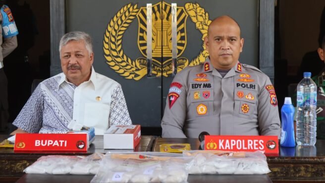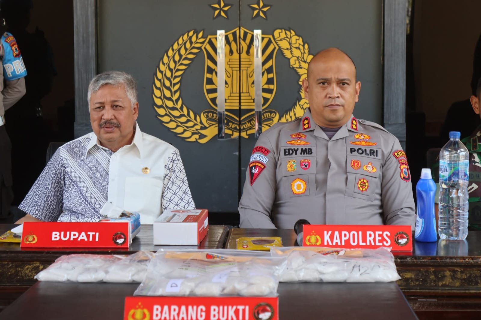 Bupati Pinrang, H. A. Irwan Hamid, S.Sos hadir langsung pada kegiatan pemusnahan barang bukti narkotika di halaman Mapolres Pinrang, Kamis (25/9). Dalam sambutannya, ia mengapresiasi keberhasilan aparat kepolisian mengungkap sejumlah kasus besar peredaran narkoba.