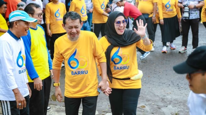 BARRU,HBK – Ribuan peserta jalan santai dalam rangka peringatan hari jadi Kabupaten Barru ke-65 tahun 2025, dilepas secara langsung oleh Bupati Barru Andi Ina Kartika Sari SH, M.Si,