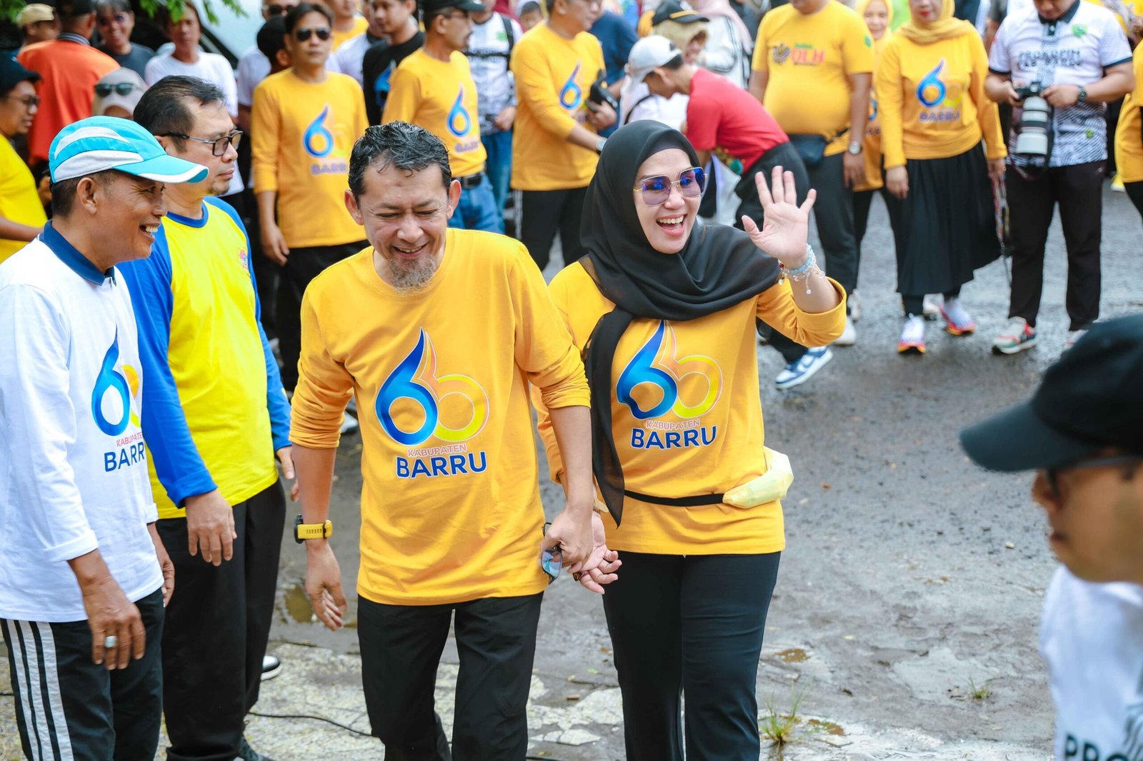 Dalam kesempatan ini,Bupati Barru didampingi Wakil Bupati Barru Dr. Ir. Abustan A. Bintang, M.Si, Ketua DPRD Barru Drs. H. Syamsuddin Muhidin, M.Si, Kapolres Barru AKBP. Dodik Susianto, .S.I.K ,Dandim 1405/Parepare) Letkol Kav. S. Simanjuntak, S.I.P ,Kajari Barru Syamsurezki, S.H.,M.H , Pj. Setda Barru Abu Bakar, S.Sos.,M.Si , Ketua Pengadilan Agama Barru Maryam Fadhilah Hamdan, S.H.I., Pabung Kodim 1405/Parepare),Mayor Inf Aris , Wakapolres Barru Kompol Lamakkanenneng, S.E , Anggota DPRD Kota Makassar Muh. Yulianto Badwi , Anggota DPRD Fraksi PKS), Drs. H. Muh Akil, M.Pd , Para Pimpinan OPD Kab. Barru, Para Camat se Kab. Barru, Para Guru dan Ormas, Para Masyarakat mengikuti lomba jalan santai.
