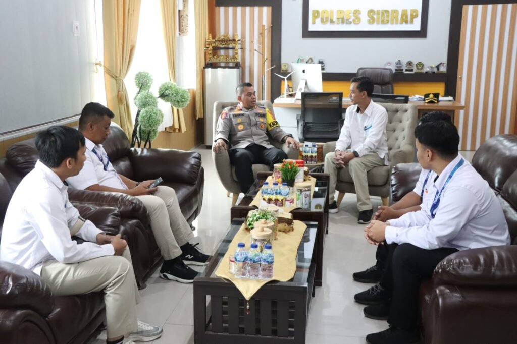 SIDRAP, HBK – Kapolres Sidrap AKBP Dr. Fantry Taherong. SH.,S.I.K.,MH, menerima kunjungan resmi dari Wakil Pimpinan Cabang (Pimca) Perum Bulog Sidrap Heri Susianto selaku Pejabat Sementara Pimpinan Cabang, bersama staf di Mapolres Sidrap, Senin (07/10/2024).