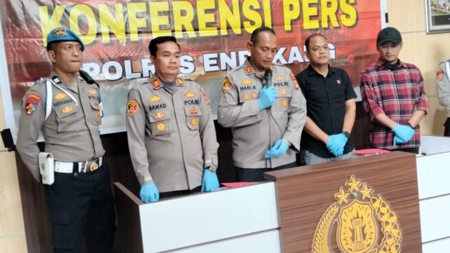 ENREKANG, HBK — Kapolres Polres Enrekang AKBP Hari Budiyanto menggelar konferensi pers terkait kasus penganiayaan yang mengakibatkan korban meninggal dunia, Selasa (24/2/2026), di lobi Mapolres.