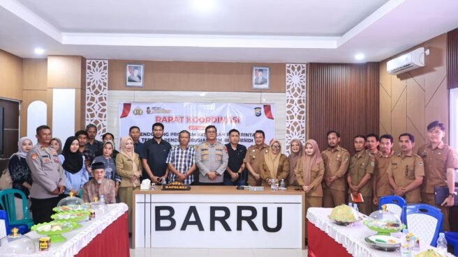 BARRU,HBK – Polres Barru menggelar rapat koordinasi dalam rangka mendukung kebijakan pemerintah terkait pendistribusian BBM subsidi dan LPG 3 kilogram, Selasa (21/4/2026), di Aula Polres Barru.
