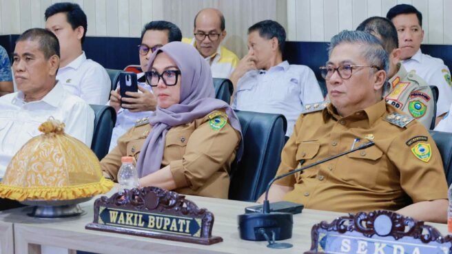 BARRU,HBK – Bupati Barru, Andi Ina Kartika Sari, SH. M.Si., didampingi Wakil Bupati Barru, Dr. Ir. Abustan Andi Bintang, M.Si., bersama unsur Forkopimda dan jajaran Pimpinan OPD Barru, mengikuti Peluncuran Logo dan Tema HUT ke-80 Kemerdekaan Republik Indonesia.