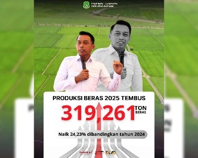 Berdasarkan data Dinas Pertanian setempat, produksi gabah kering giling (GKG) meningkat signifikan menjadi 556.362 ton, naik dari 447.856 ton pada tahun 2024.
