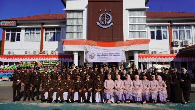 BARRU, HBK — Kejaksaan Negeri (Kejari) Barru menggelar upacara peringatan Hari Lahir Kejaksaan ke-79, pada Senin 2 September 2024, di Halaman Kantor Kejari Barru.