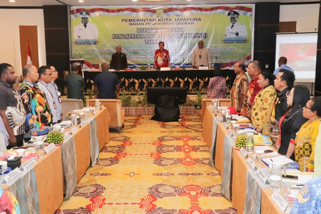 Sebelumnya dakam Rakor Bapenda tahun 2025 yang mengusung tema “Dengan tema Optimalisasi dan Sinergi Kebijakan Fiskal Daerah sebagai Kota Jasa menuju Digitalisasi”, Pemerintah Kota Jayapura telah merealisasikan PAD dari pajak dan retribusi daerah per 16 Oktober 2025 adalah sebesar Rp 242.290.465.241,- dengan target di tahun 2025 adalah sebesar Rp 290.228.843.455,- atau telah mencapai 83,48 %..(hum)